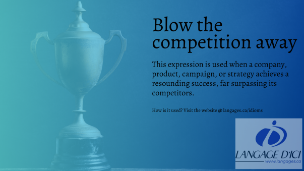 The expression "blow the competition away" is used when a company, product, campaign, or strategy achieves a resounding success, far surpassing its competitors. It conveys the idea of absolute market dominance, leaving rivals struggling to keep up.